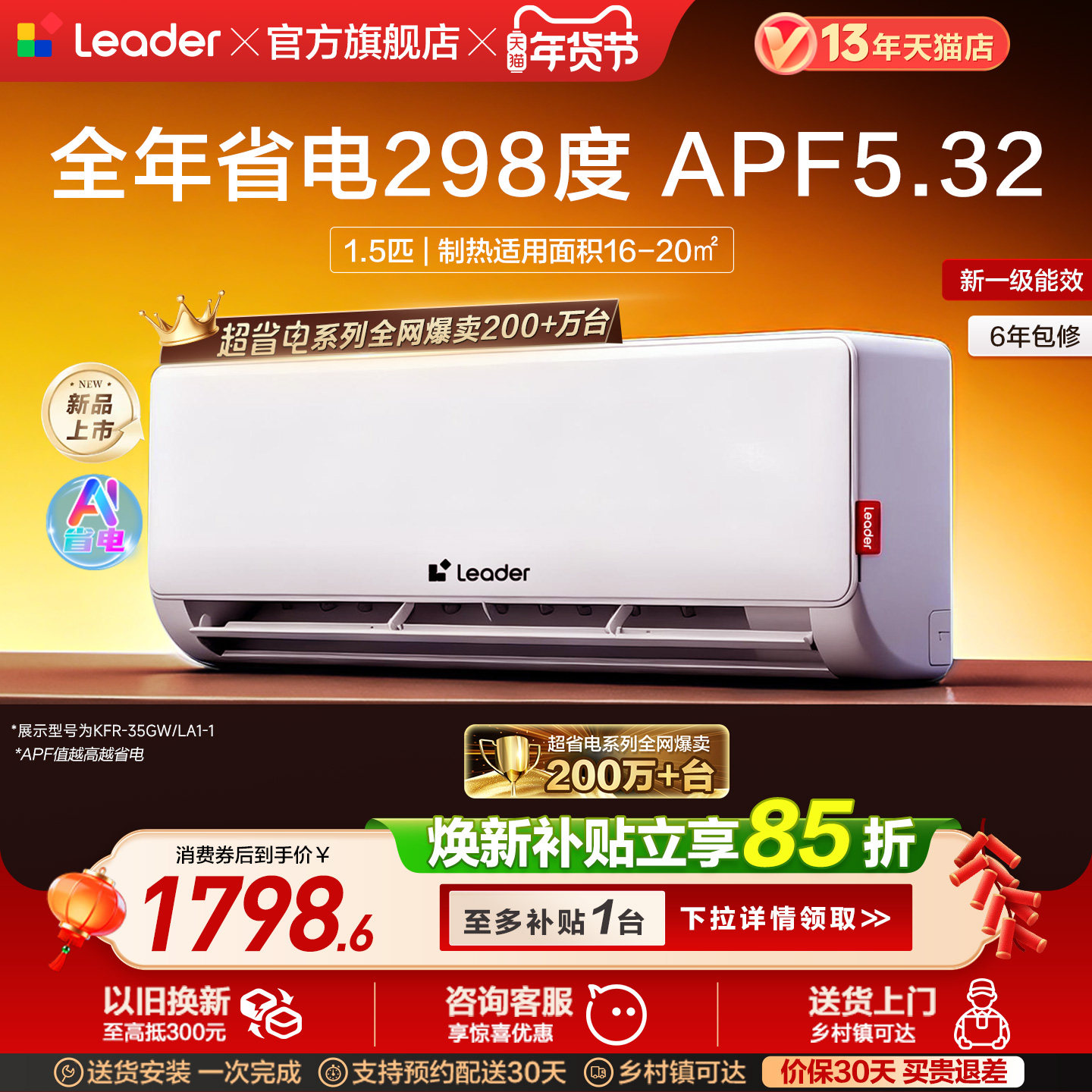 [纯铜管]海尔净省电plus小红花空调新一级1.5匹变频冷暖挂机35E1