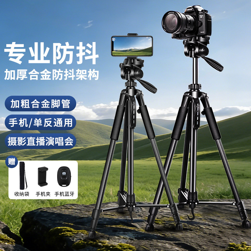 相机三脚架支架直播摄像机单反微单手机拍照拍摄补光灯专业级旅行超轻便落地式便携户外多功能固定承重三角架