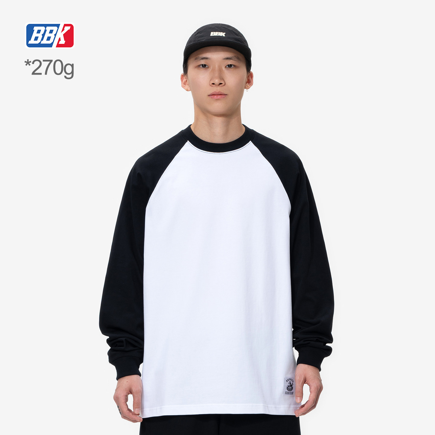 BBK 270g重磅 插肩袖净色长袖T恤bboy街舞嘻哈纯色打底小领口长袖