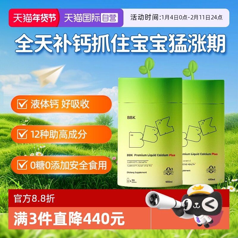 【官方正品】BBK液体钙儿童 钙镁锌新西兰进口钙片赖氨酸旗舰店