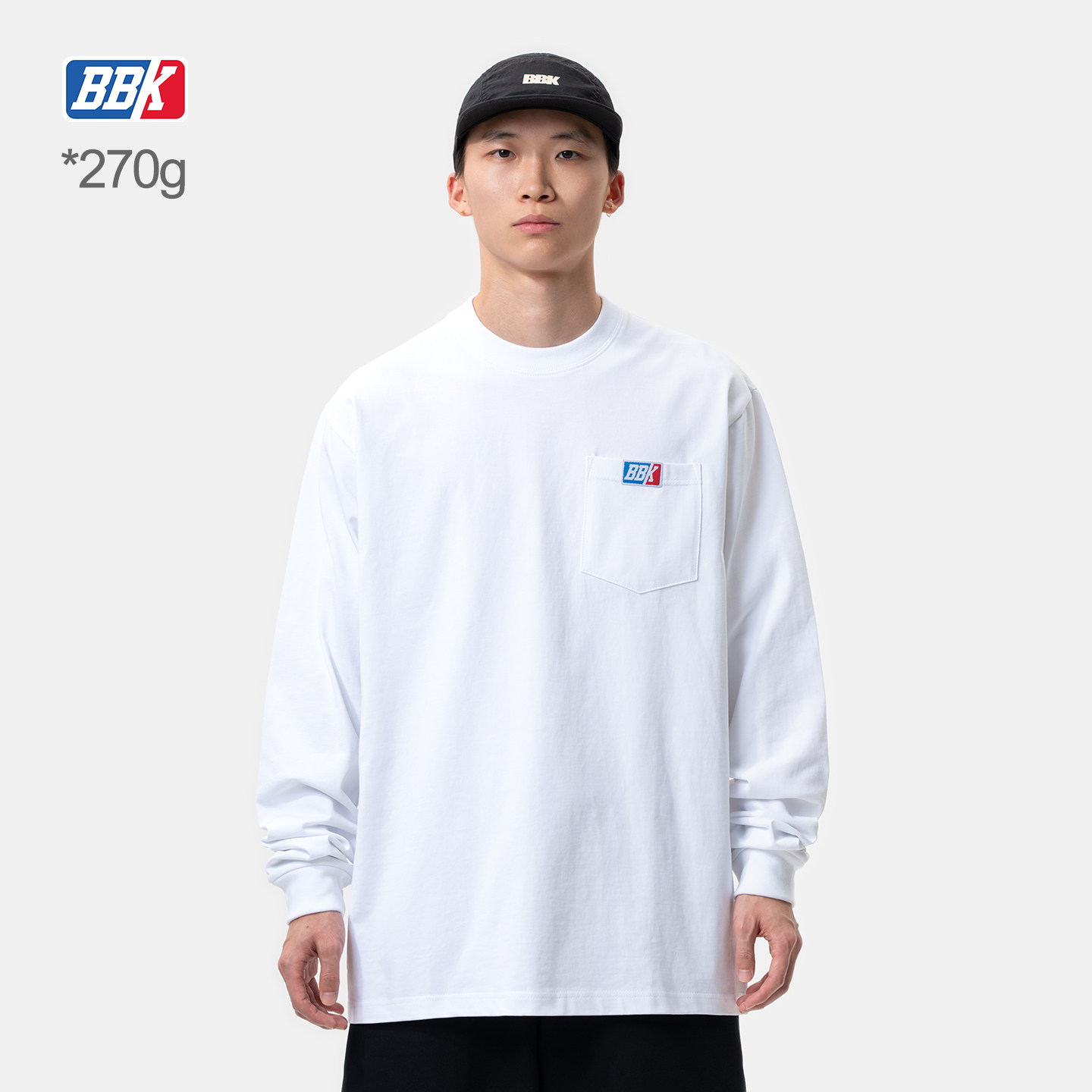 BBK 270g宽松bboy纯色t恤 重磅街舞嘻哈打底小领 加袋长袖 滑板