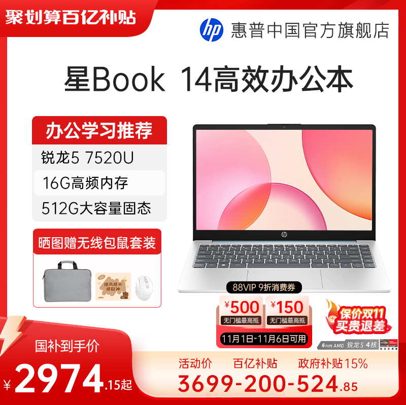 【详情抢百补红包+全国补贴15%】HP/惠普可选星book 14/15可选锐龙R5 处理器笔记本电脑学生办公本惠普官方店