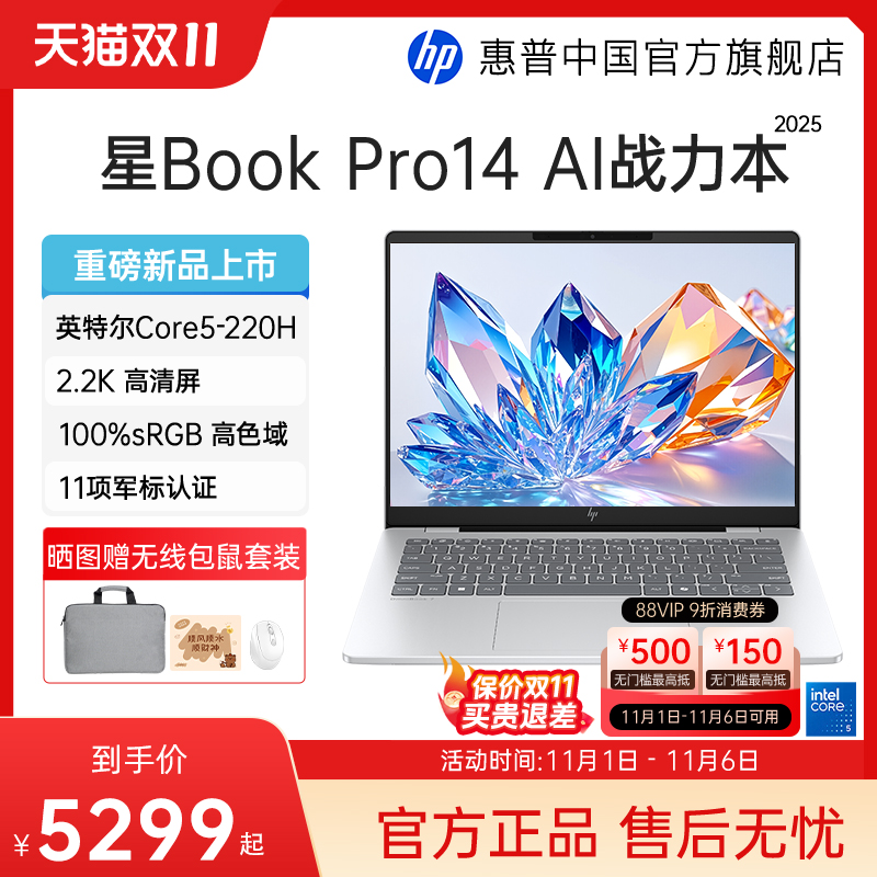 【政府补贴20%】HP/惠普星bookpro14 可选英特尔酷睿5 2.8k 120Hz惠普笔记本电脑轻薄本办公本正品官方旗舰店