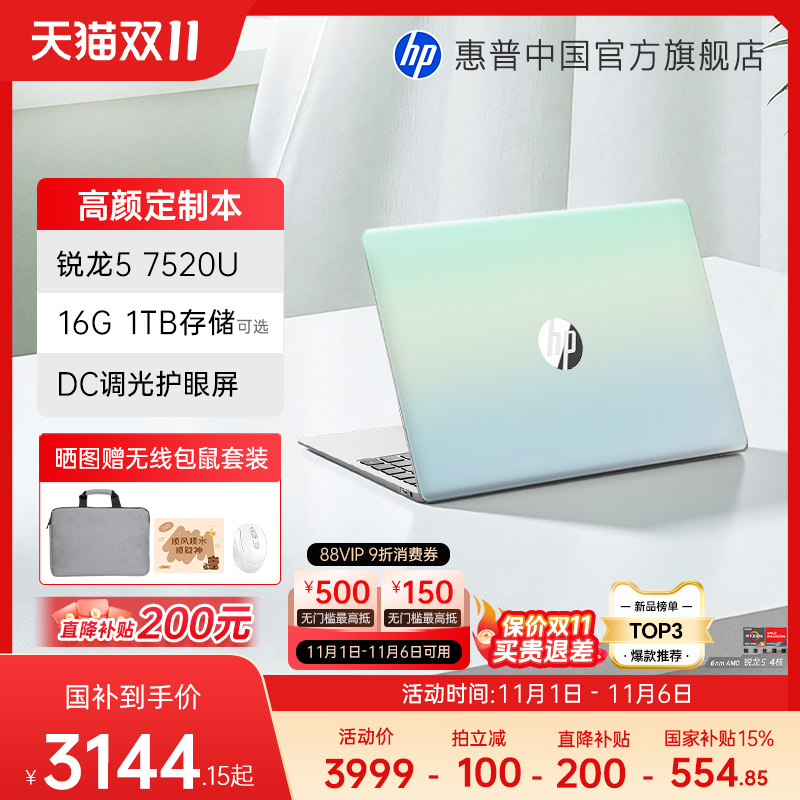 【爆款热销】HP/惠普可选星Book 14/15锐龙 7000系R5处理器笔记本电脑轻薄学生办公本惠普官方旗舰店