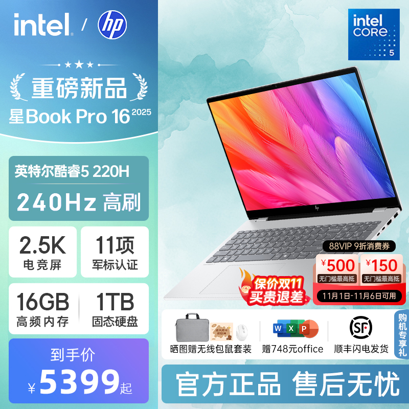 HP/惠普星bookpro16可选英特尔酷睿7 2.5k 240Hz惠普笔记本电脑轻薄便携商务办公本官方旗舰店
