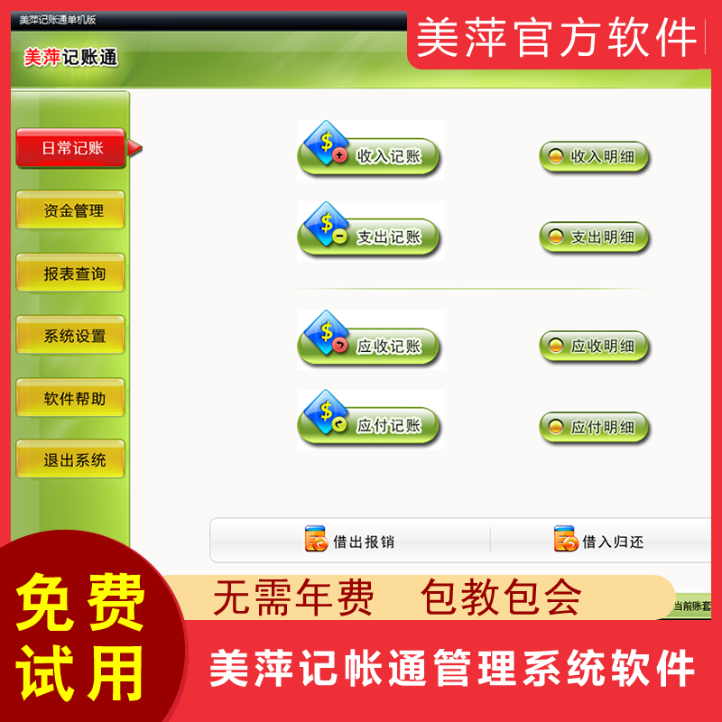 美萍记帐通管理软件 财务应收应付款 会计收入支出流水做账务简单