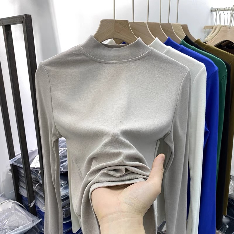 2025秋冬新半高领洋气小立领加薄绒磨毛内搭打底衫女长袖T恤上衣