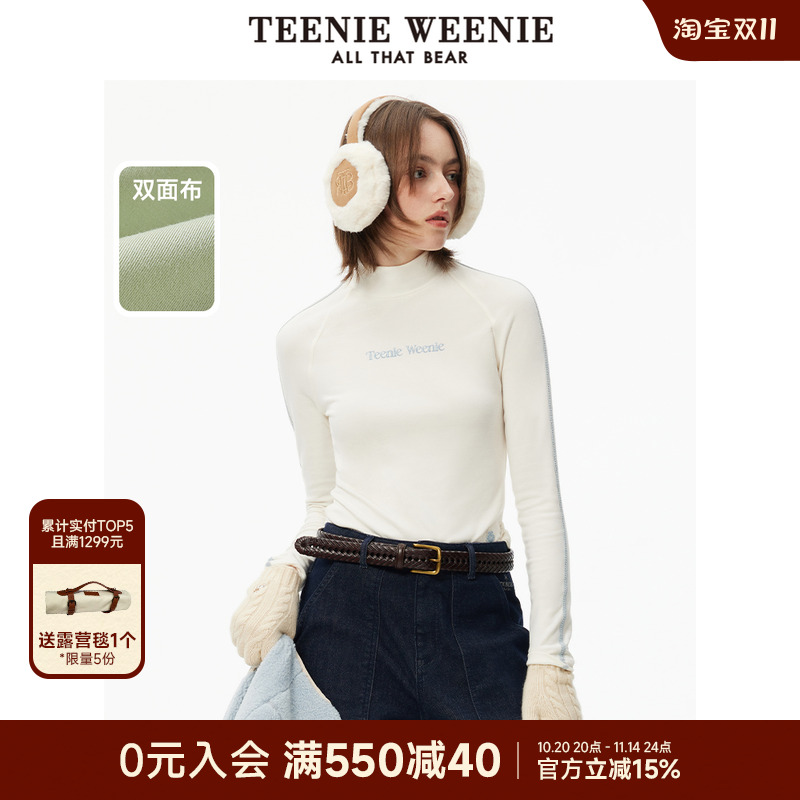 TeenieWeenie小熊女长袖T恤冬季半高领休闲修身打底衫插肩袖上衣