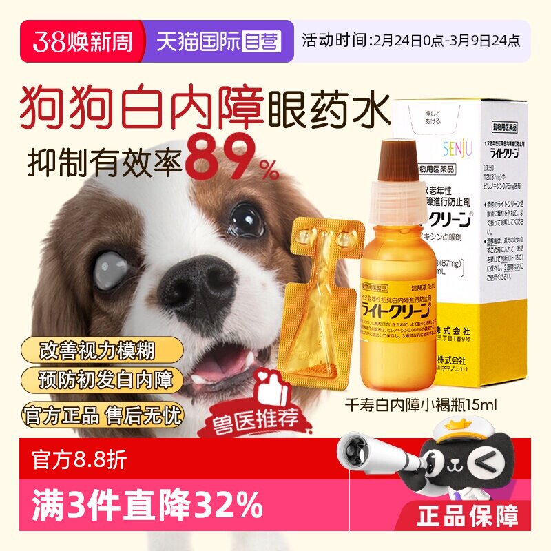 日本千寿猫狗白内障滴眼液宠物老年抑制视力弱模糊浑浊眼药水15ml