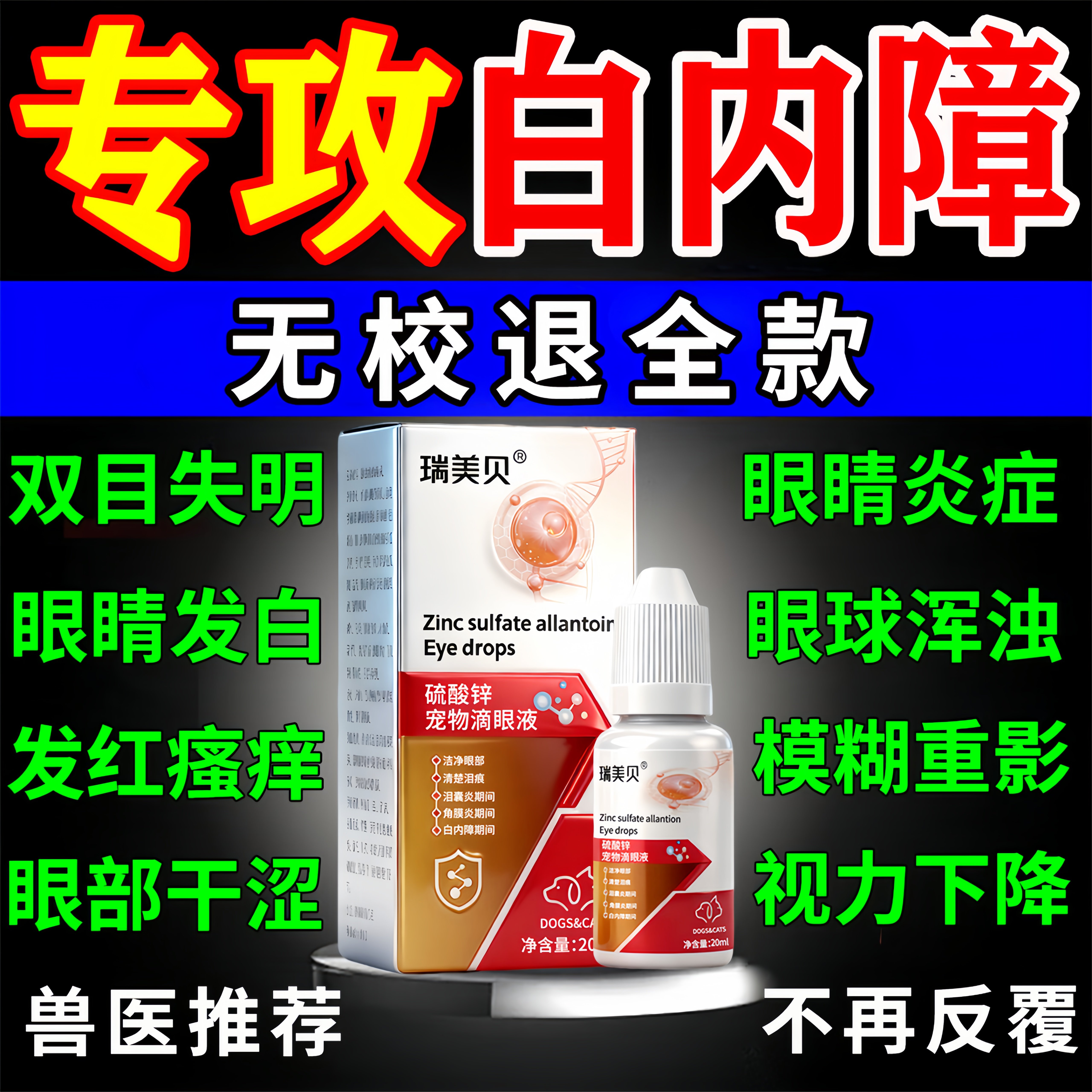 日本千寿滴眼液狗狗白内障宠物专用预防老年犬泰迪比熊15ml包邮