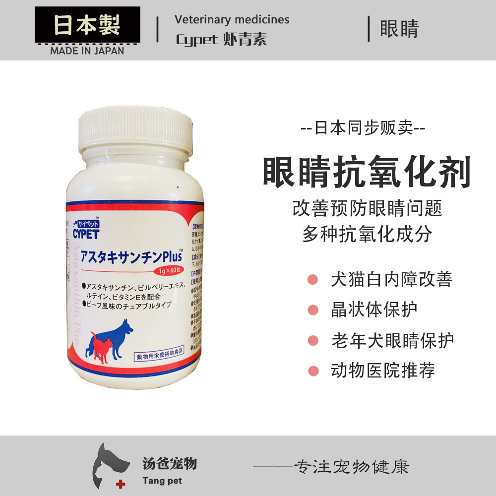 日本 Cypet 虾青素叶黄素 犬猫眼疾恢复白内障预防恢复晶体60粒