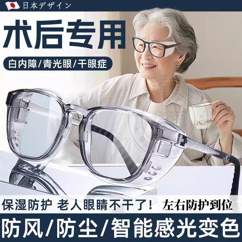 日本白内障术后湿房镜老人干眼保湿眼镜防风干涩全包围变色近视sn