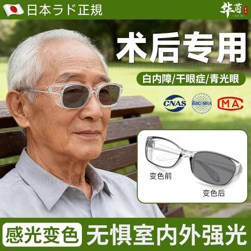 日本白内障专用眼镜术后变色防强偏光紫外线老人眼干防护目保湿MZ