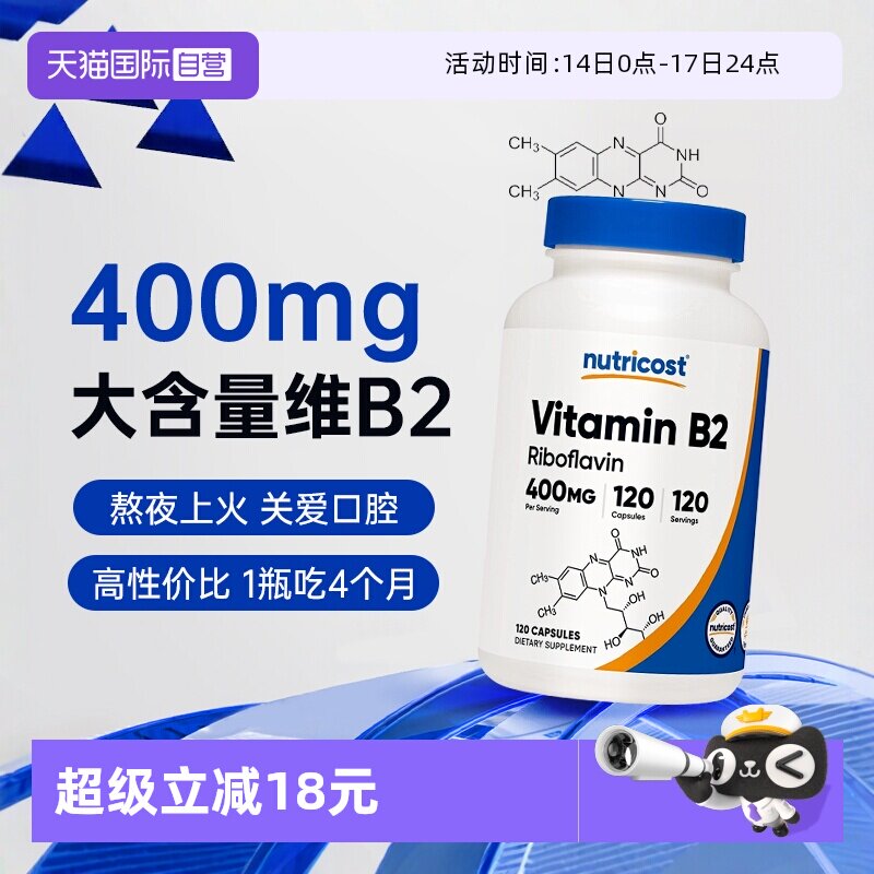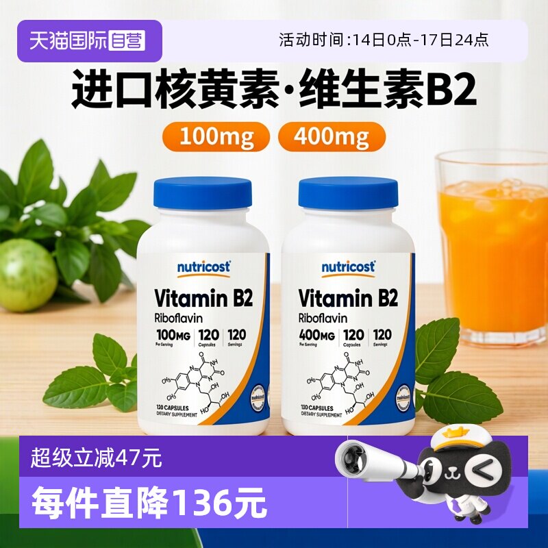 【自营】nutricost美国进口维生素vb2大含量400mg核黄素官方旗舰