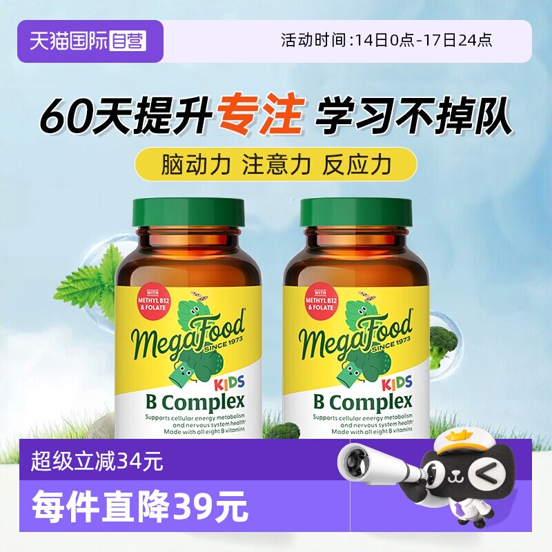 【自营】2瓶装儿童b族复合维生素vb12b6学生集中注意力专注不多动