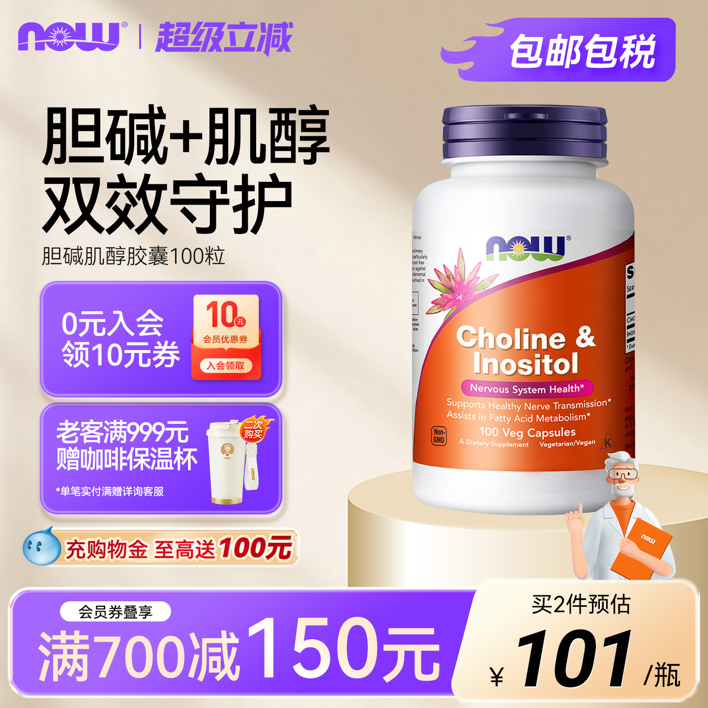NOW Foods诺奥胆碱+肌醇成人维生素VB族补充剂100粒孕前调理女士