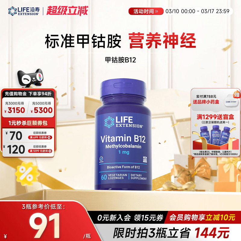 沿寿LIFE甲钴胺维生素VB族B12成人营养神经系统活性修复正品旗舰