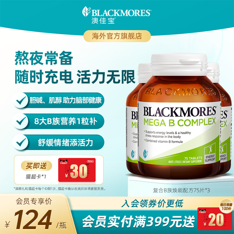 澳佳宝BLACKMORES复合B族维生素VB75片*2男士女士保健品官方正品