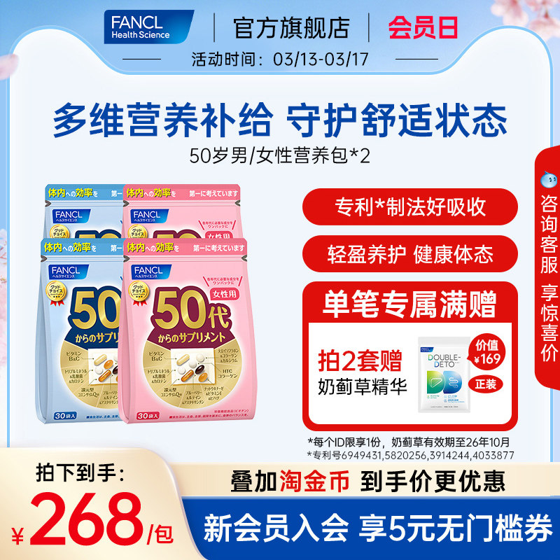 FANCL50岁男/女每日综合营养包2包复维辅酶Q10中老年女性维生素VB