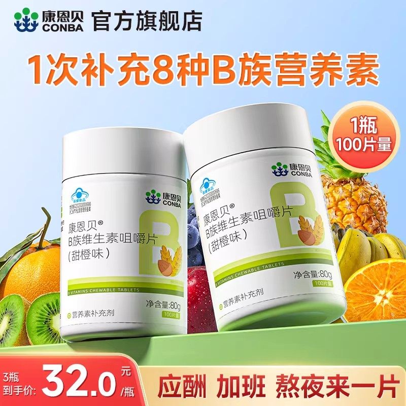 康恩贝B族维生素成人复合多种维生素VB1B2B6B12片叶酸vb族咀嚼片