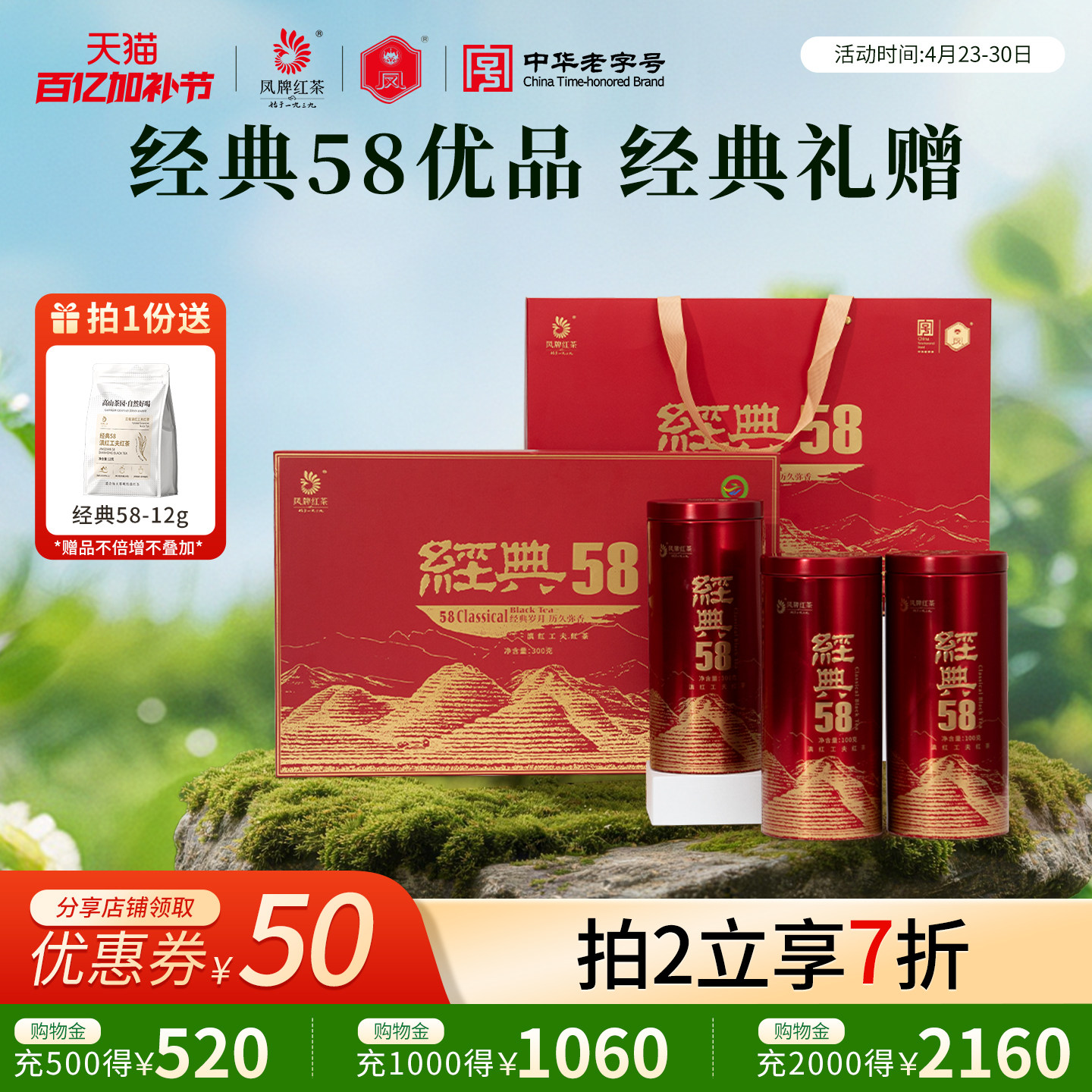 凤牌红茶经典58茶叶滇红茶特级礼盒装300g茶礼品送长辈年货礼盒