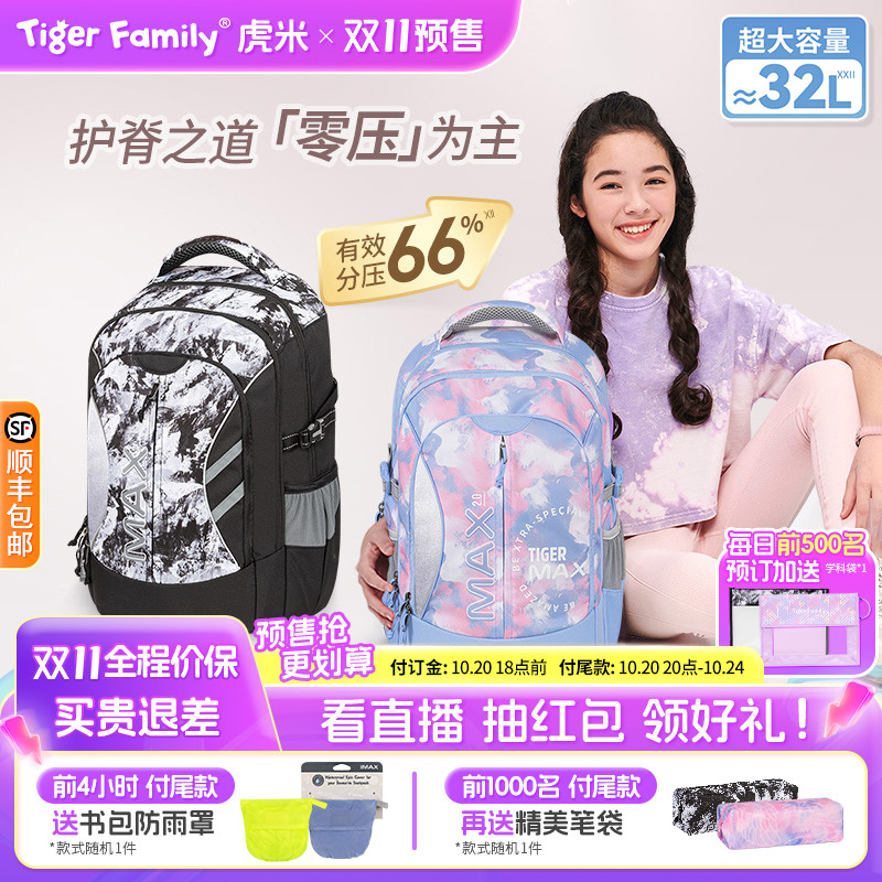 tigerfamily虎米书包小学生男女孩五六年级初高中32L护脊减负背包