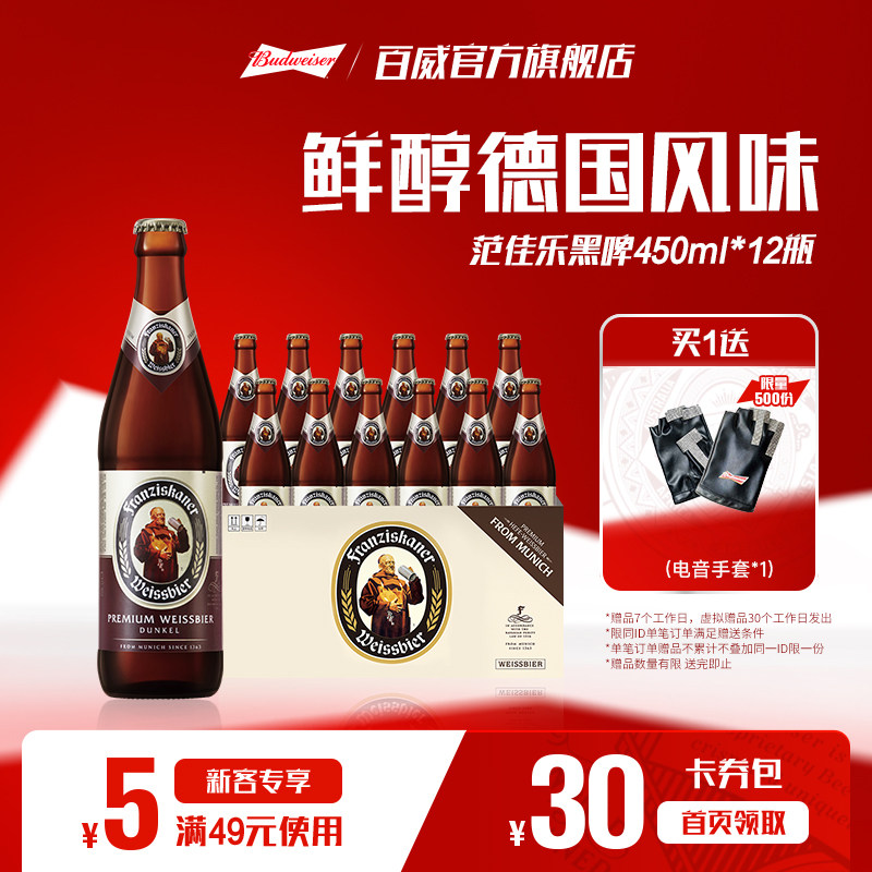 范佳乐教士啤酒德国黑啤450ml*12瓶11.75°P精酿整箱批发百威集团