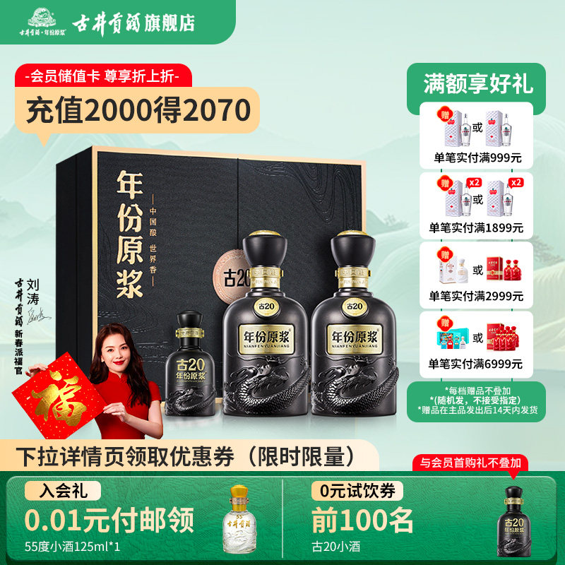 【官方直营】古井贡酒 年份原浆古20礼盒52度500mL*2瓶白酒礼盒