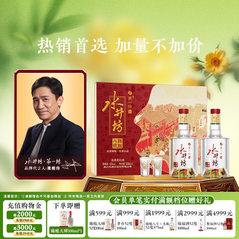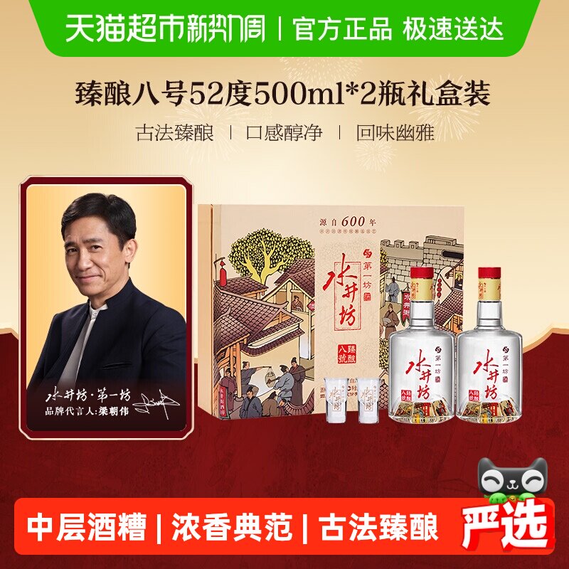 梁朝伟推荐-水井坊臻酿八号礼盒52度520ml*2瓶礼盒装 浓香型白酒
