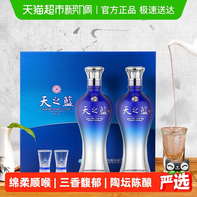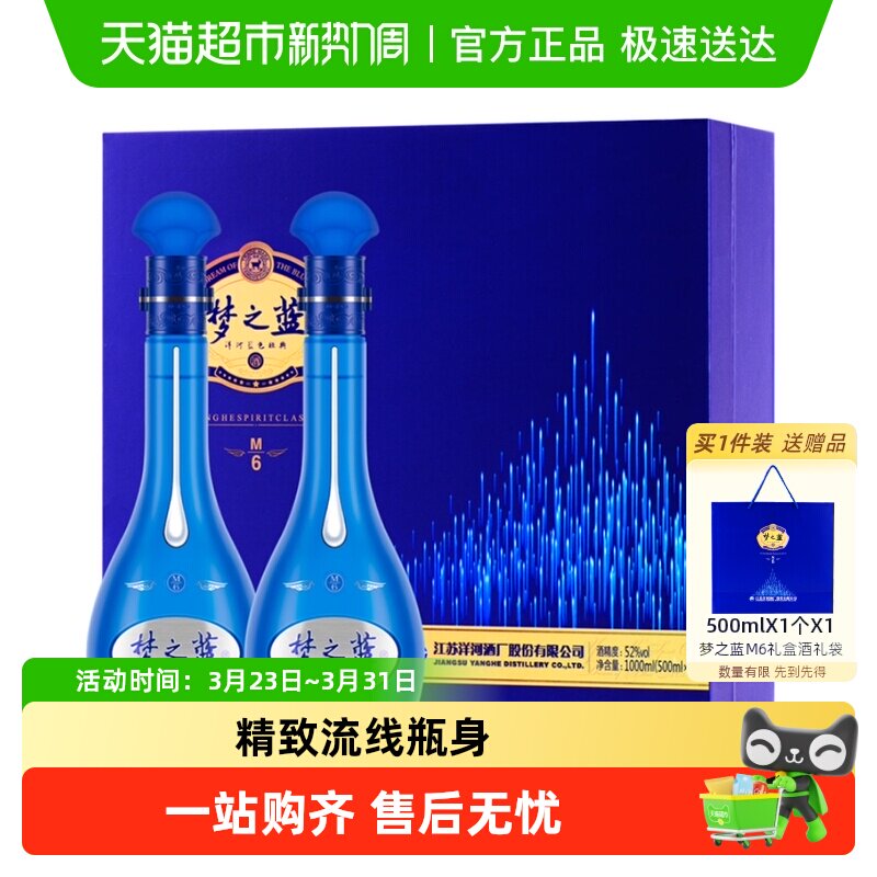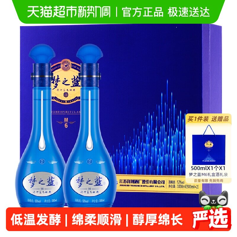 【官方正品】洋河 梦之蓝M6+52度550ml*2瓶礼盒 绵柔型浓香白酒