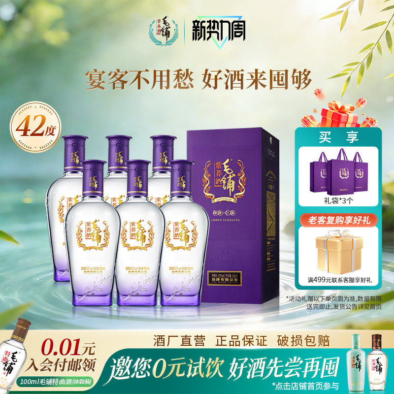 毛铺酒官方旗舰店42度52度紫荞酒500ml苦荞酒整箱礼盒白酒基酒水