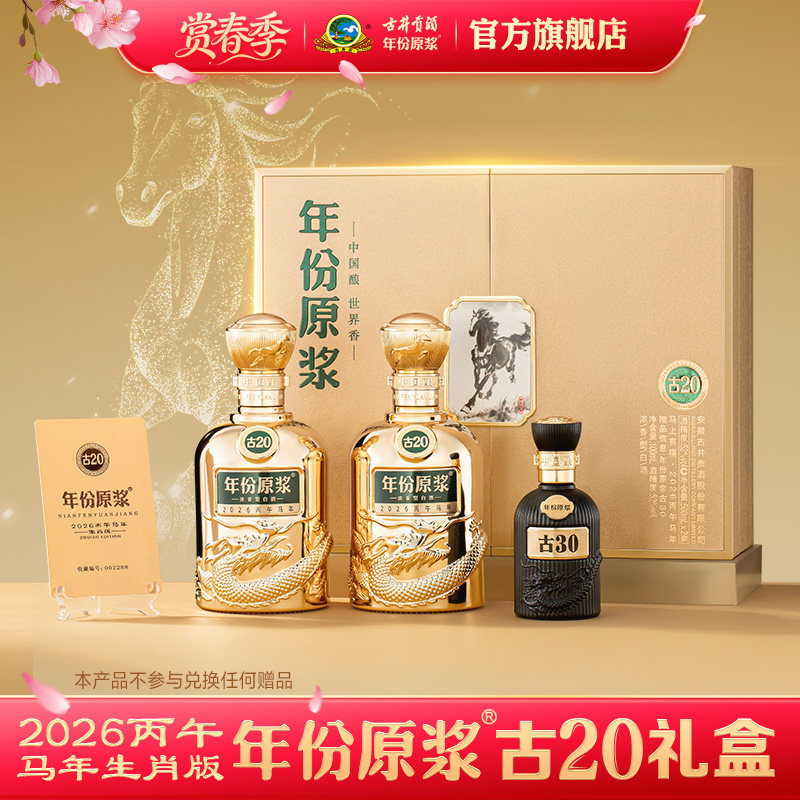 【热销中】古井贡酒年份原浆古20 52度500mL*2瓶马年礼盒生肖白酒