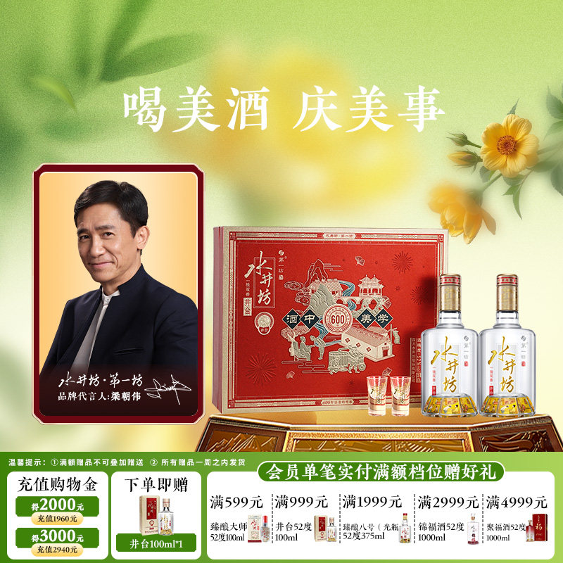 【梁朝伟首选白酒】水井坊井台52度520ml双支礼盒装浓香型送礼