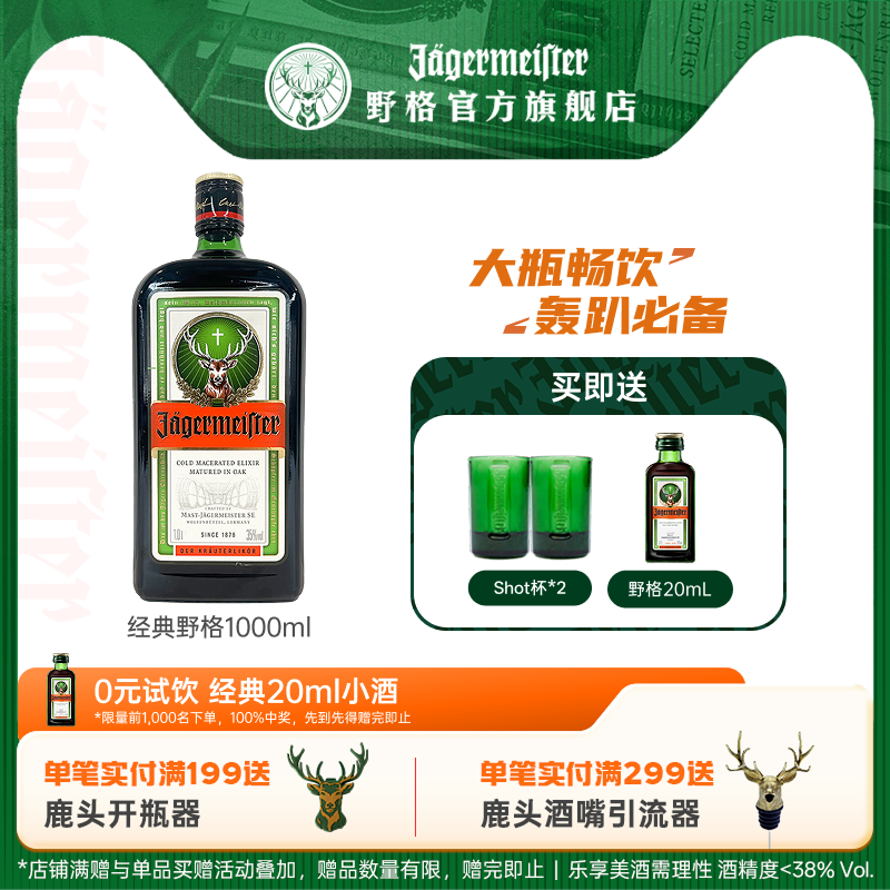 野格利口酒力娇酒1000ml 德国进口洋酒威士忌正品野格官方旗舰店