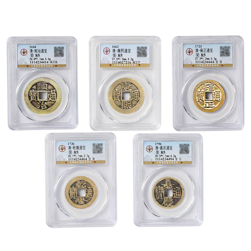 五帝钱真品六帝古币铜钱币压门槛清代公博评级盒子纯黄铜挂件保真