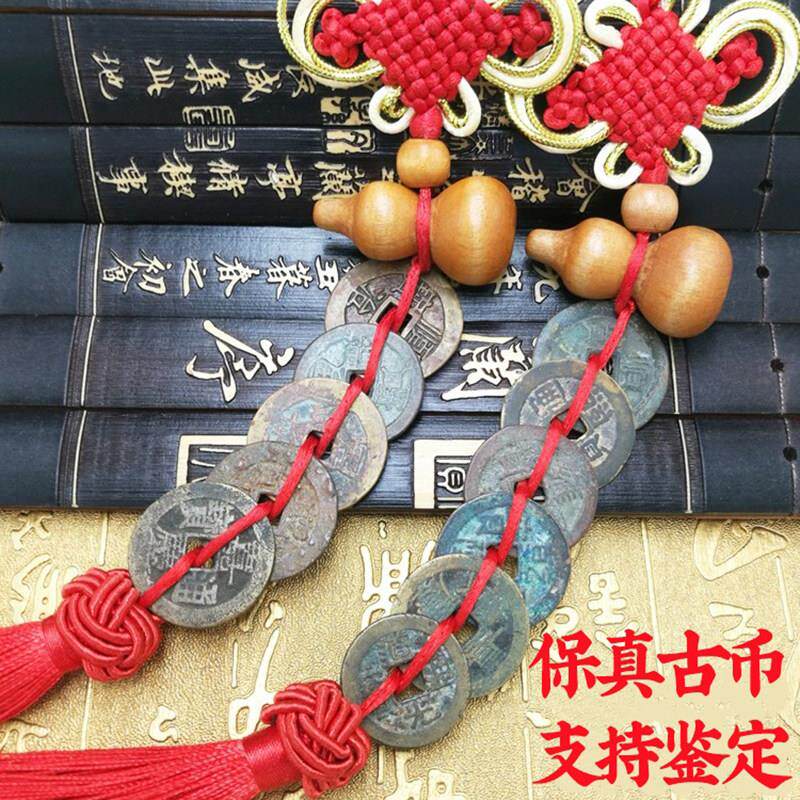 六帝钱八帝钱真品六八铜钱化五黄二黑汽车挂件绳挂饰平安招财随身