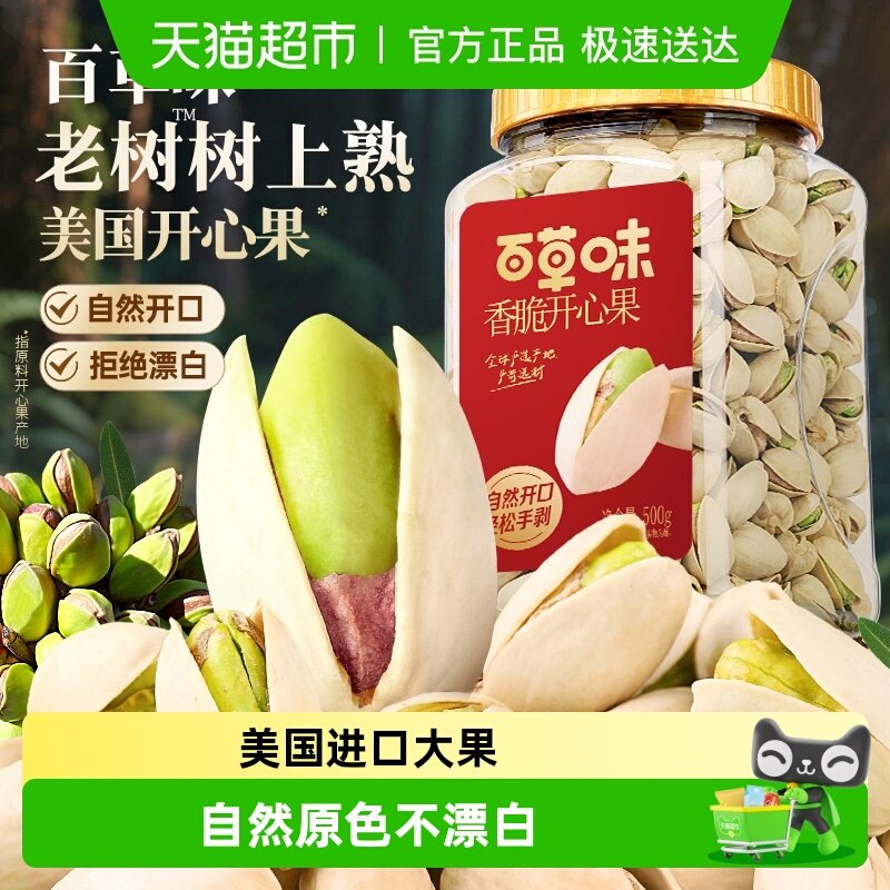 百草味盐焗开心果500g大颗粒大果罐装原色无漂白坚果炒货休闲零食