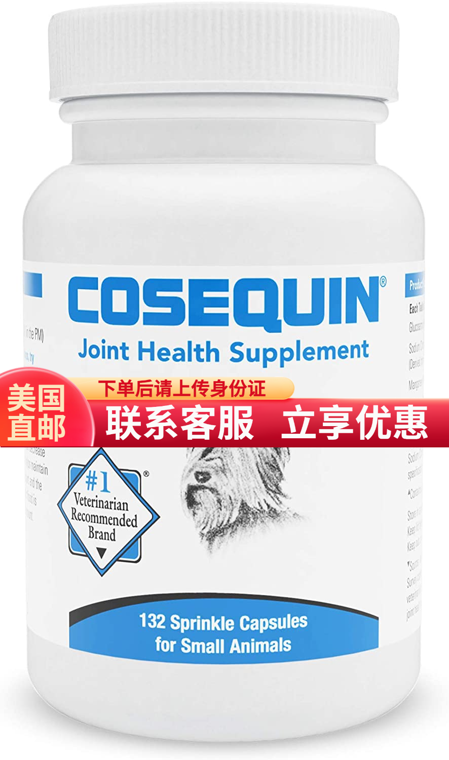 美国直邮cosequin狗狗猫咪维骨力软骨素无MSM关节保健132粒