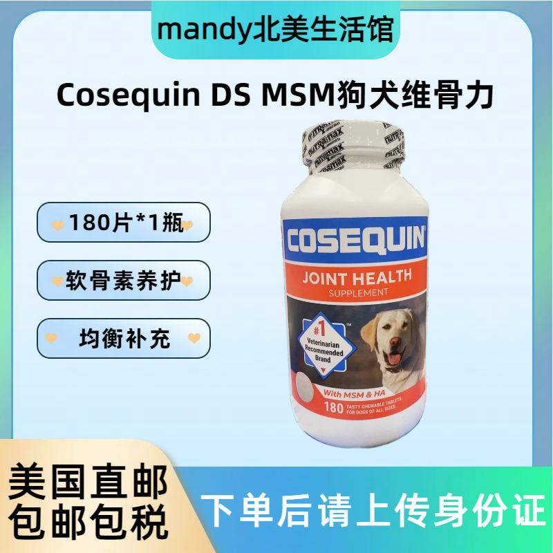 美国直邮 Cosequin康仕健狗狗犬关节片软骨素MSM维骨力氨糖180粒