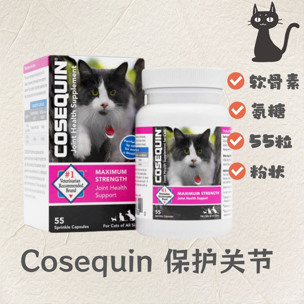 美国Nutramax Cosequin 貓用關節補充膠囊含氨基葡萄糖软骨素55粒