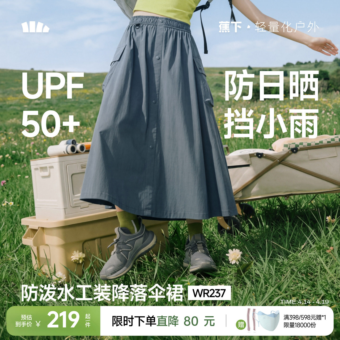 蕉下工装裙女夏撞色机能半身裙户外休闲运动速干裙a字降落伞裙子