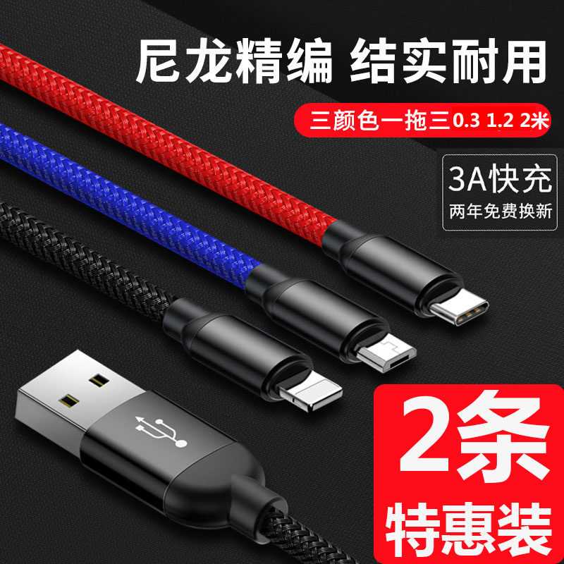 三合一拖3数据线车载手机usb多功能两用适用安卓苹果typec华为