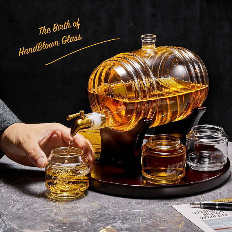 美国代购CRAFTGEN 威士忌酒桶醒酒器套装5件套 洋酒杯玻璃杯礼物