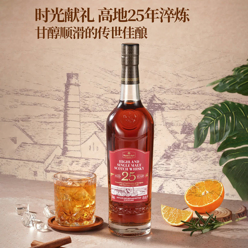 山姆英国进口25年苏格兰核心高地产区橡木桶单一麦芽威士忌洋酒