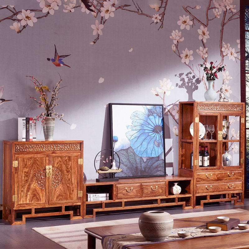 红木家具鸡翅木电视柜客厅中式古典茶几组合全实木地柜卧室影视柜