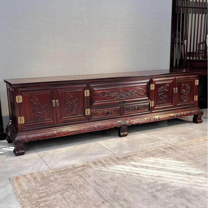 非洲酸枝木中式仿古实木 红木家具 客厅视听柜子矮柜 地柜电视柜
