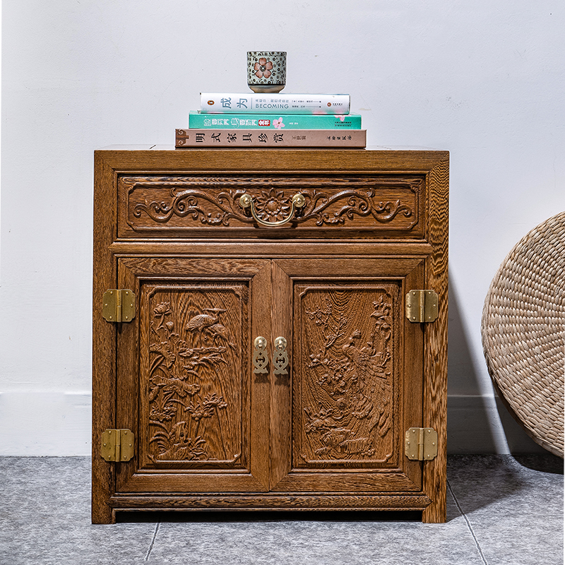 红木家具鸡翅木床头柜全实木储物柜置物架中式矮柜卧室电视柜边柜