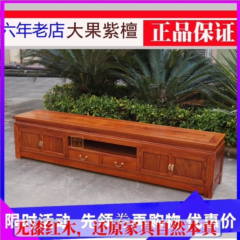 速发红木电视柜萝森影视格菠柜格2米全实木地红木家具原木新中式