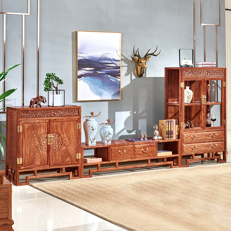 缅甸花梨电视柜客厅家具明清古典新中式团圆电视柜柜大果紫檀地柜