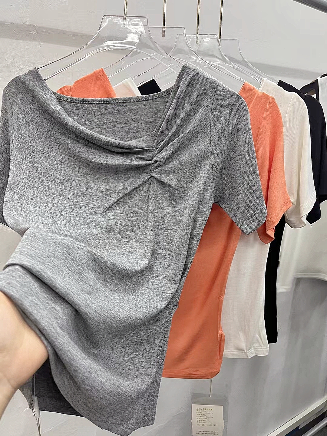 清仓特价C3346小心机斜V领短袖女装上衣夏季T恤【全店任3件包邮】